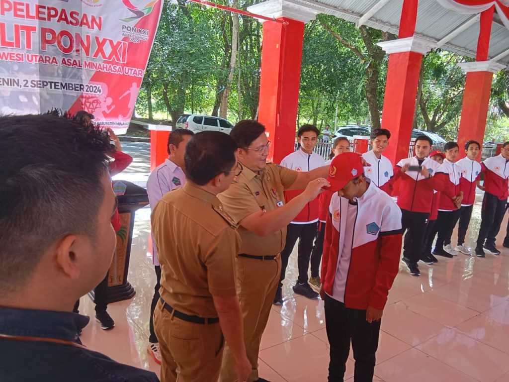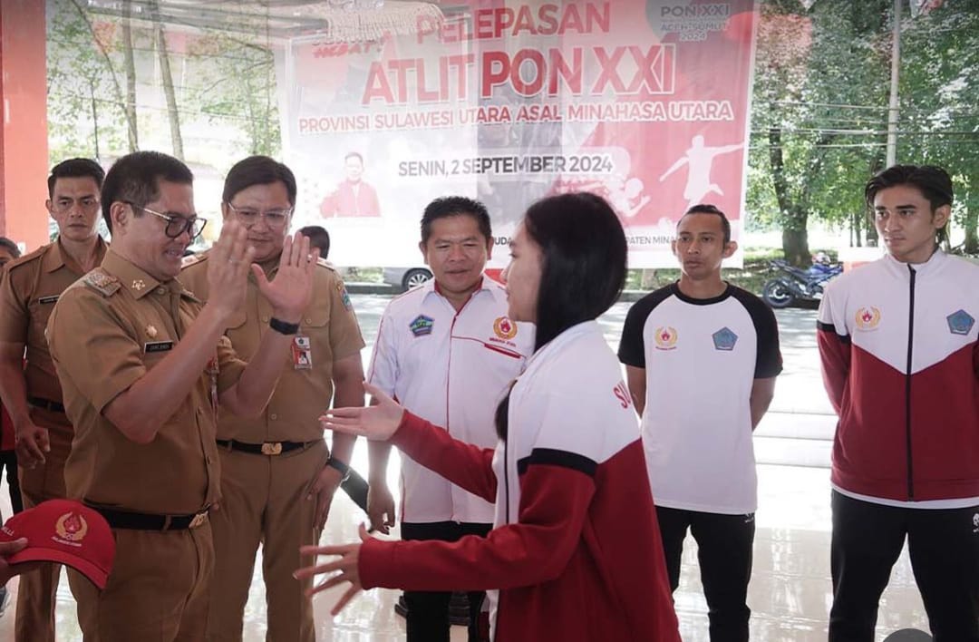 MINUT, nyiurmedia.id/ – Bupati Joune Ganda melepas atlet Minut yang akan berlaga di PON XXI di Sumatera Utara dan Aceh.