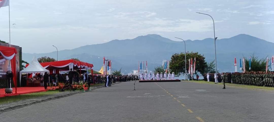Upacara ini turut dihadiri oleh Sekretaris Daerah Provinsi Sulawesi Utara, Bpk. Steve Kepel, S.T., M.Si., mewakili Gubernur Sulawesi Utara, serta Forkopimda Provinsi Sulawesi Utara, para Pj./Pjs. Bupati dan Walikota, pimpinan instansi vertikal, dan Forkopimda Kabupaten/Kota se-Sulawesi Utara. (Donny L)