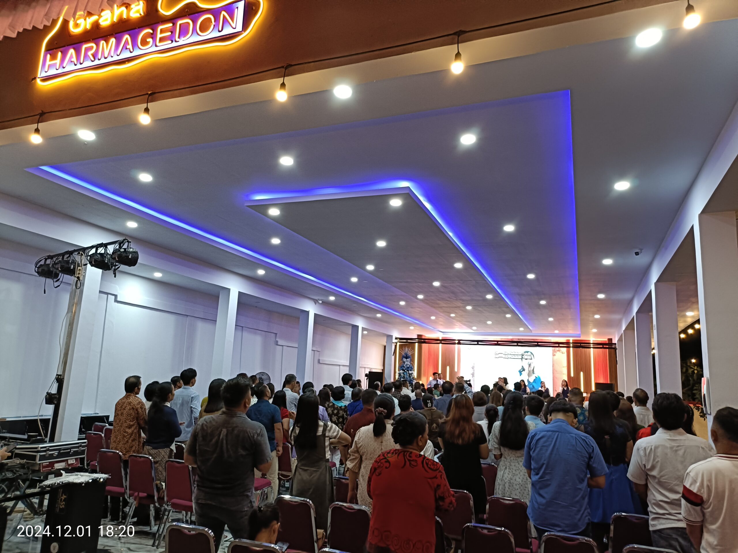 Manado, nyiurmedia.id/ – 1 Desember 2024 – Dalam suasana khidmat dan penuh kemuliaan, Gereja Bethel Indonesia (GBI) Harmagedon menggelar ibadah Natal di Aula Harmagedon yang megah. Dengan mengusung tema yang mendalam, “Mari Kita Pergi ke Betlehem”, ratusan jemaat dan tamu undangan memenuhi aula tersebut. Antusiasme dan sukacita mereka tercermin dari suasana yang semarak, ditambah dengan area parkir yang luas untuk menampung para pengunjung. Kehadiran Tuhan terasa nyata di tengah perayaan Natal yang penuh makna ini.