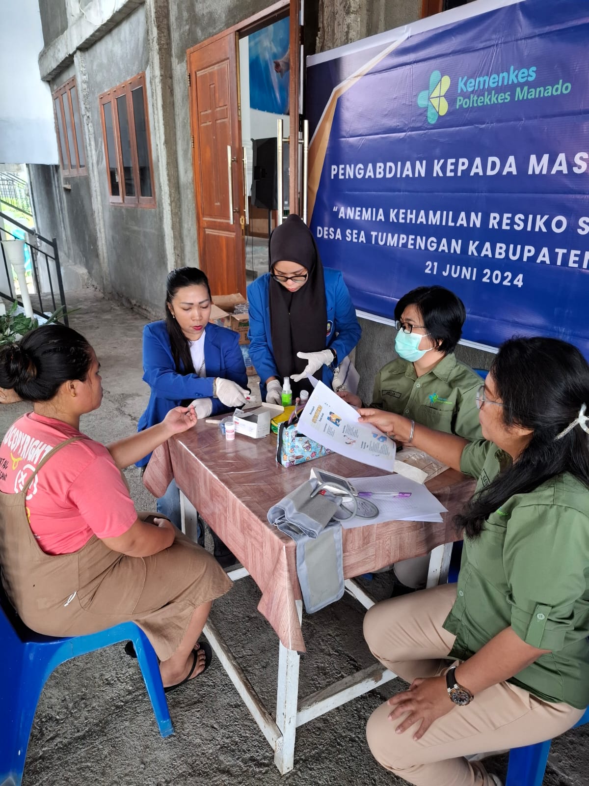 MINAHASA, nyiurmedia.id/ – Kegiatan Pengabdian kepada Masyarakat yang dilaksanakan oleh dosen Poltekkes Kemenkes Manado di Wilayah Desa Sea Tumpengan, Kecamatan Pineleng, Kabupaten Minahasa pada 21 Juni 2024, memiliki tema penting yaitu “Pemberdayaan Masyarakat Mencegah Anemia Kehamilan Risiko Stunting.” Kegiatan ini dipimpin oleh Ketua Tim, Amelia Donsu, SST, M.Kes, bersama rekannya, Els Ivi Kulas, SST, M.Kes, dan melibatkan mahasiswa dalam pelaksanaan penyuluhan.