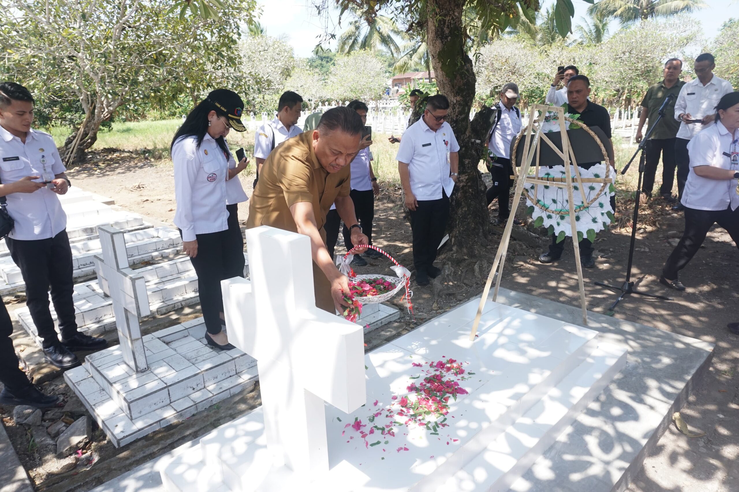 Hadir pejabat Pemerintah Provinsi Sulut dalam prosesi tabur bunga dan penghormatan.