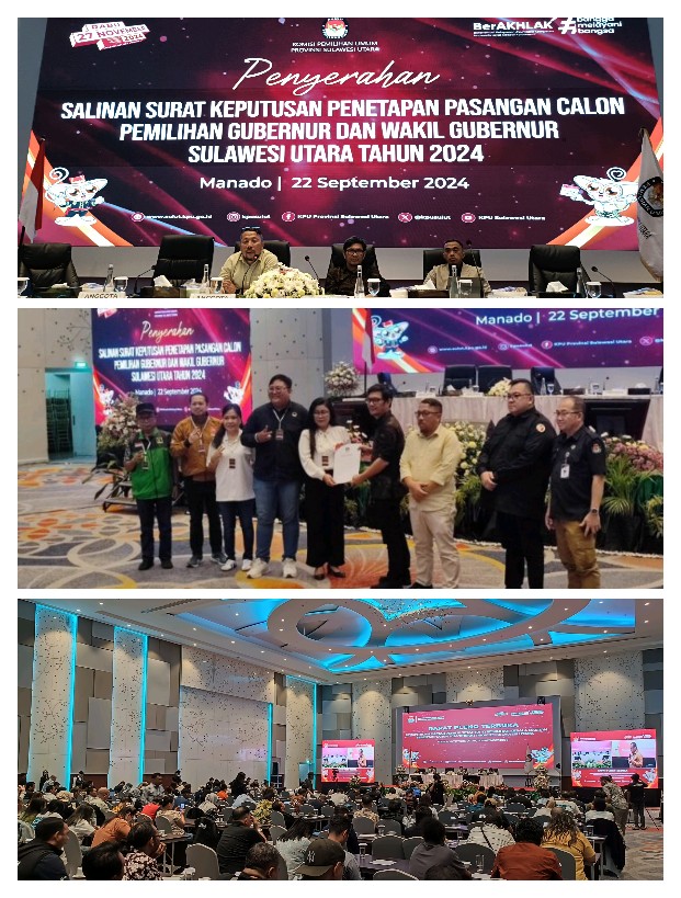 MANADO, nyiurmedia.id/ – Komisi Pemilihan Umum (KPU) Sulawesi Utara telah memutuskan tiga pasangan calon Gubernur-Wakil Gubernur yang memenuhi syarat untuk Pilkada 2024.