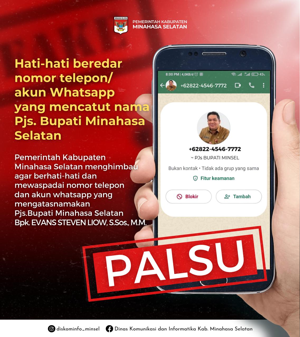 Waspadai Nomor WA Palsu Atas Nama Pjs. Bupati Minahasa Selatan